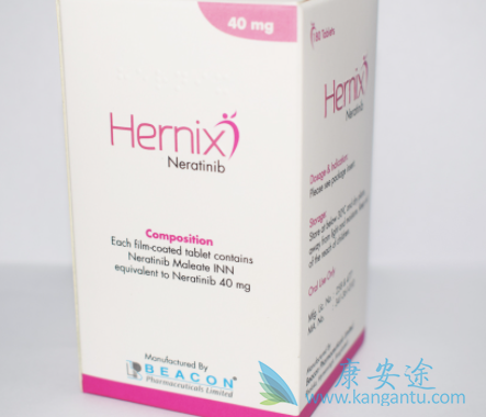 来那替尼与 HER1、HER2 和 HER4 的 ATP 结合口袋中保守的半胱氨酸残基不可逆地结合,并降低受体自磷酸化,导致下游信号转导事件和细胞周期调节途径的持续抑制,导致细胞周期停滞和细胞凋亡。来那替尼对 ErbB 家族成员具有高度选择性,并且不会显着抑制其他几种激酶,包括 Akt、细胞周期蛋白 D1/cdk4、c-Raf 和 c-met 。在临床前研究中,来那替尼抑制HER1-和/或HER2过表达的细胞系,包括乳腺癌和表皮癌细胞系,和抑制肿瘤生长的增殖,几个HER1-和HER2依赖性异种移植模型。